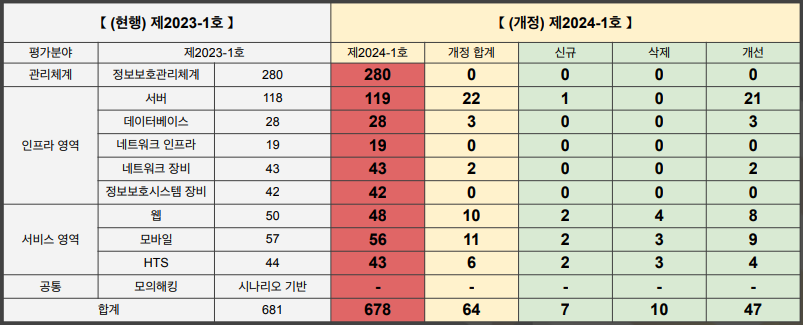 - 기존 681개 중 64개 항목을 제·개정하여 최종 678개 항목 확정