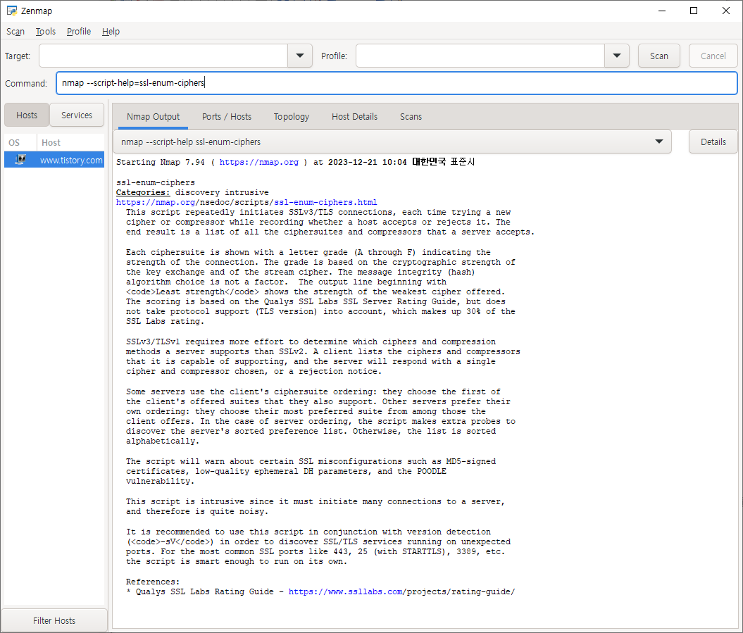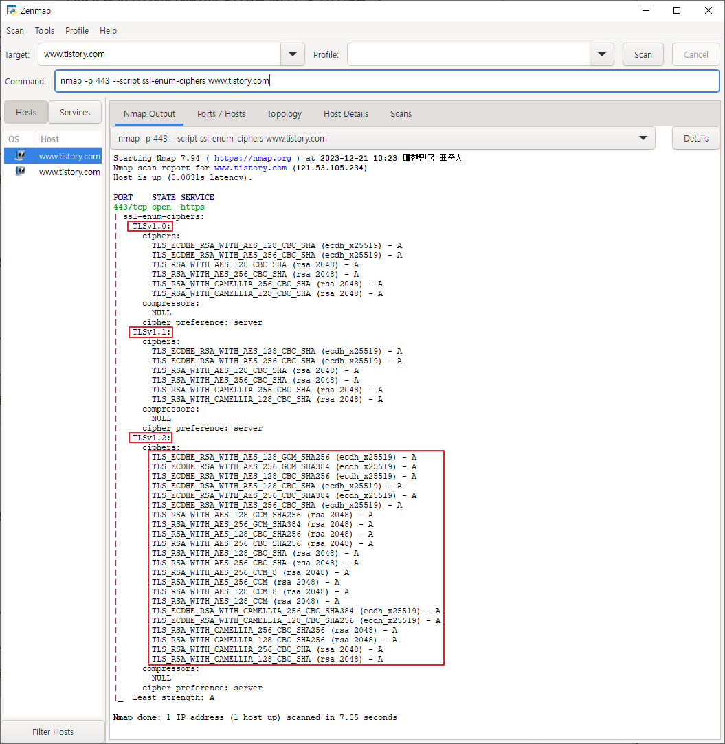 nmap -p 443 --script ssl-enum-ciphers www.tistory.com